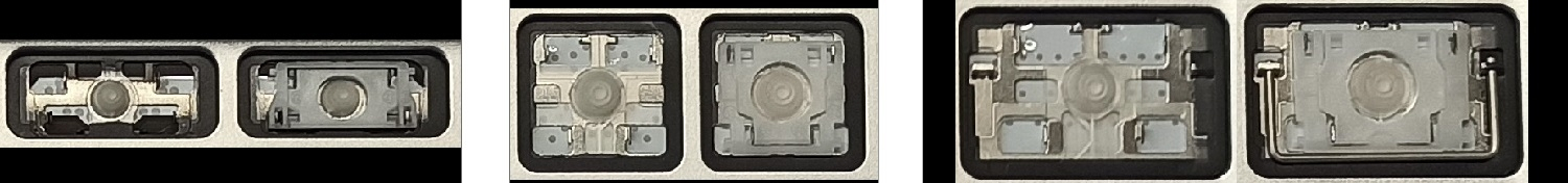 - Pour choisir le modèle approprié, comparez l’emplacement vide de votre clavier avec les photos ci-dessous, ou retirez la touche « A » : vous trouverez toujours sous celle-ci une articulation de taille moyenne.