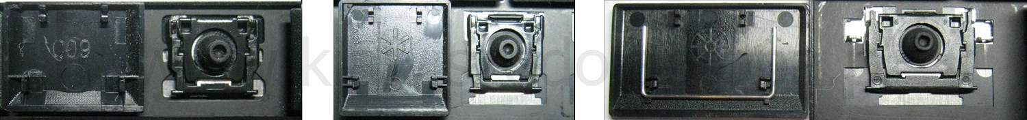 - Pour choisir le modèle approprié, comparez l’emplacement vide de votre clavier avec les photos ci-dessous, ou retirez la touche « A » : vous trouverez toujours sous celle-ci une articulation de taille moyenne.