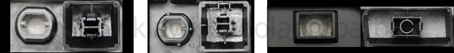 - Pour choisir le modèle approprié, comparez l’emplacement vide de votre clavier avec les photos ci-dessous, ou retirez la touche « A » : vous trouverez toujours sous celle-ci une articulation de taille moyenne.