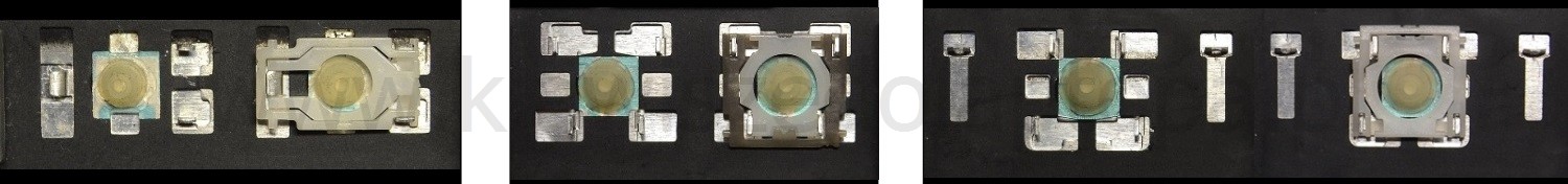 - Pour choisir le modèle approprié, comparez l’emplacement vide de votre clavier avec les photos ci-dessous, ou retirez la touche « A » : vous trouverez toujours sous celle-ci une articulation de taille moyenne.