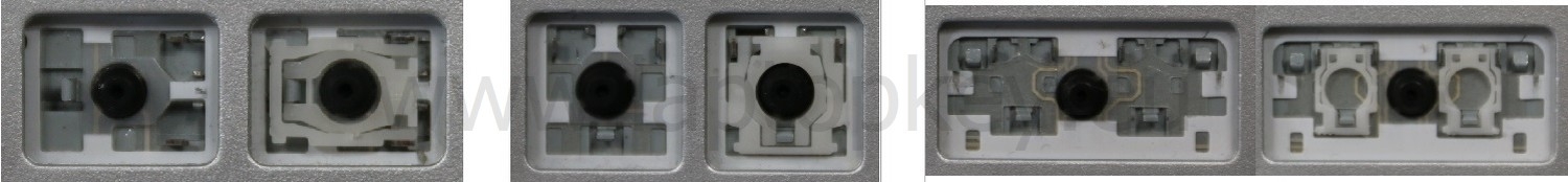 - Pour choisir le modèle approprié, comparez l’emplacement vide de votre clavier avec les photos ci-dessous, ou retirez la touche « A » : vous trouverez toujours sous celle-ci une articulation de taille moyenne.
