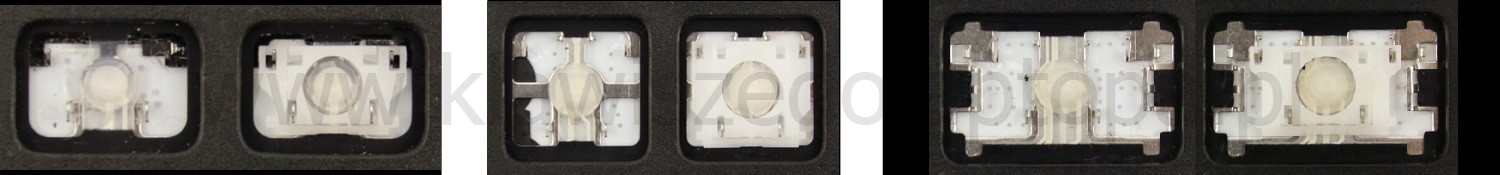 - Pour choisir le modèle approprié, comparez l’emplacement vide de votre clavier avec les photos ci-dessous, ou retirez la touche « A » : vous trouverez toujours sous celle-ci une articulation de taille moyenne.