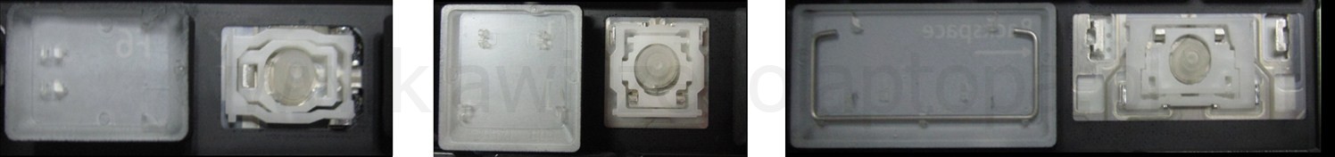 - Pour choisir le modèle approprié, comparez l’emplacement vide de votre clavier avec les photos ci-dessous, ou retirez la touche « A » : vous trouverez toujours sous celle-ci une articulation de taille moyenne.