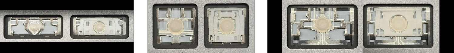 - Pour choisir le modèle approprié, comparez l’emplacement vide de votre clavier avec les photos ci-dessous, ou retirez la touche « A » : vous trouverez toujours sous celle-ci une articulation de taille moyenne.