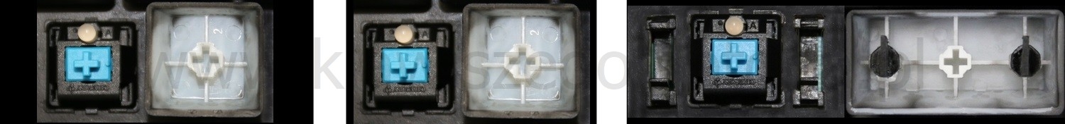 - Pour choisir le modèle approprié, comparez l’emplacement vide de votre clavier avec les photos ci-dessous, ou retirez la touche « A » : vous trouverez toujours sous celle-ci une articulation de taille moyenne.