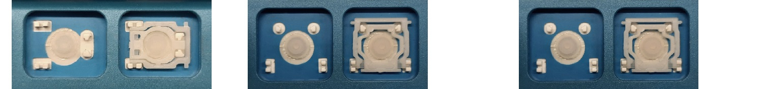 - Pour choisir le modèle approprié, comparez l’emplacement vide de votre clavier avec les photos ci-dessous, ou retirez la touche « A » : vous trouverez toujours sous celle-ci une articulation de taille moyenne.