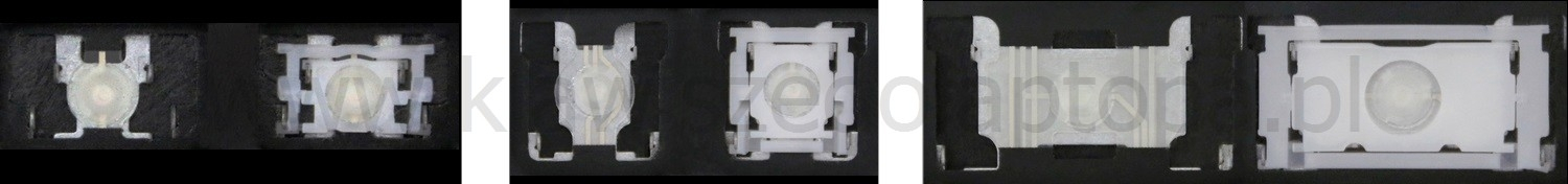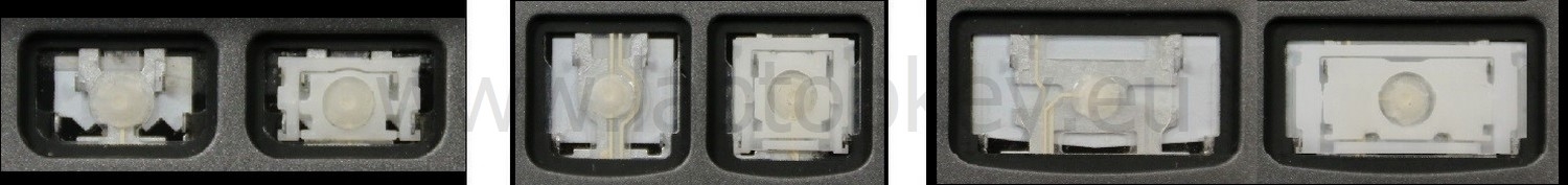 - Pour choisir le modèle approprié, comparez l’emplacement vide de votre clavier avec les photos ci-dessous, ou retirez la touche « A » : vous trouverez toujours sous celle-ci une articulation de taille moyenne.