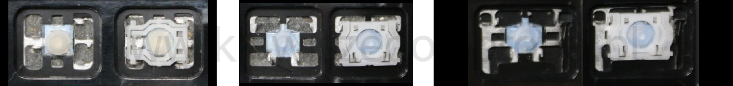 - Pour choisir le modèle approprié, comparez l’emplacement vide de votre clavier avec les photos ci-dessous, ou retirez la touche « A » : vous trouverez toujours sous celle-ci une articulation de taille moyenne.