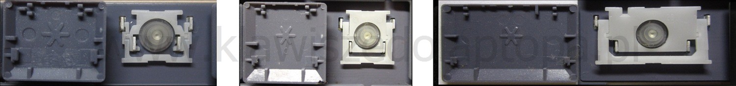 - Pour choisir le modèle approprié, comparez l’emplacement vide de votre clavier avec les photos ci-dessous, ou retirez la touche « A » : vous trouverez toujours sous celle-ci une articulation de taille moyenne.