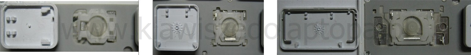 - Pour choisir le modèle approprié, comparez l’emplacement vide de votre clavier avec les photos ci-dessous, ou retirez la touche « A » : vous trouverez toujours sous celle-ci une articulation de taille moyenne.